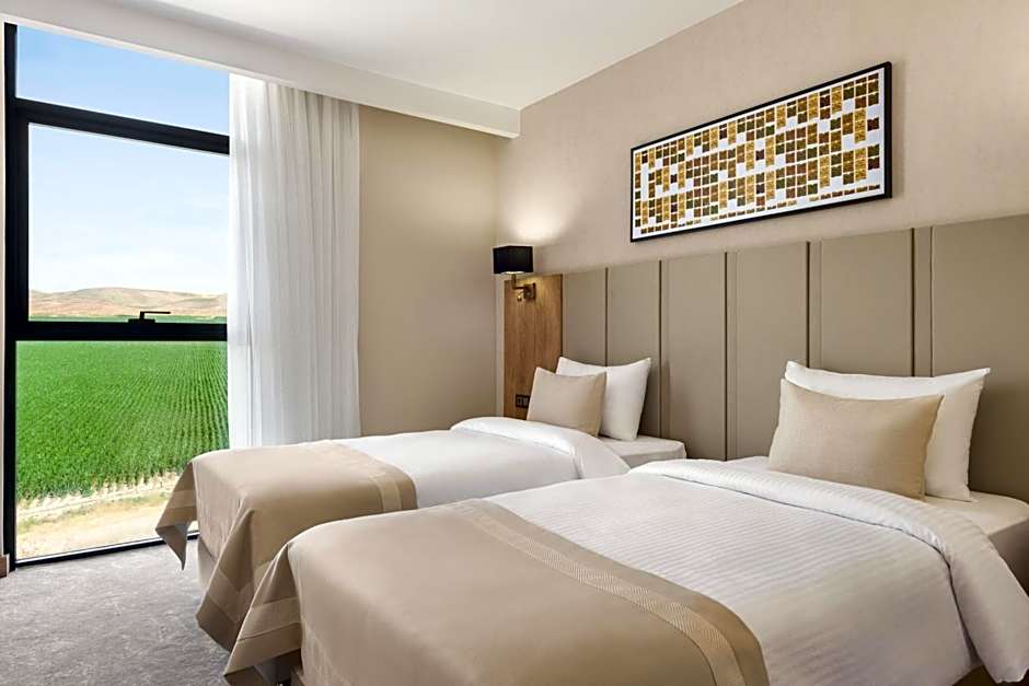Offering free toiletries, this double room includes a private bathroom with a bath, a shower and a hairdryer. The air-conditioned double room offers a TV, a mini-bar, a tea and coffee maker, a seating area as well as city views. The unit offers 2 beds.